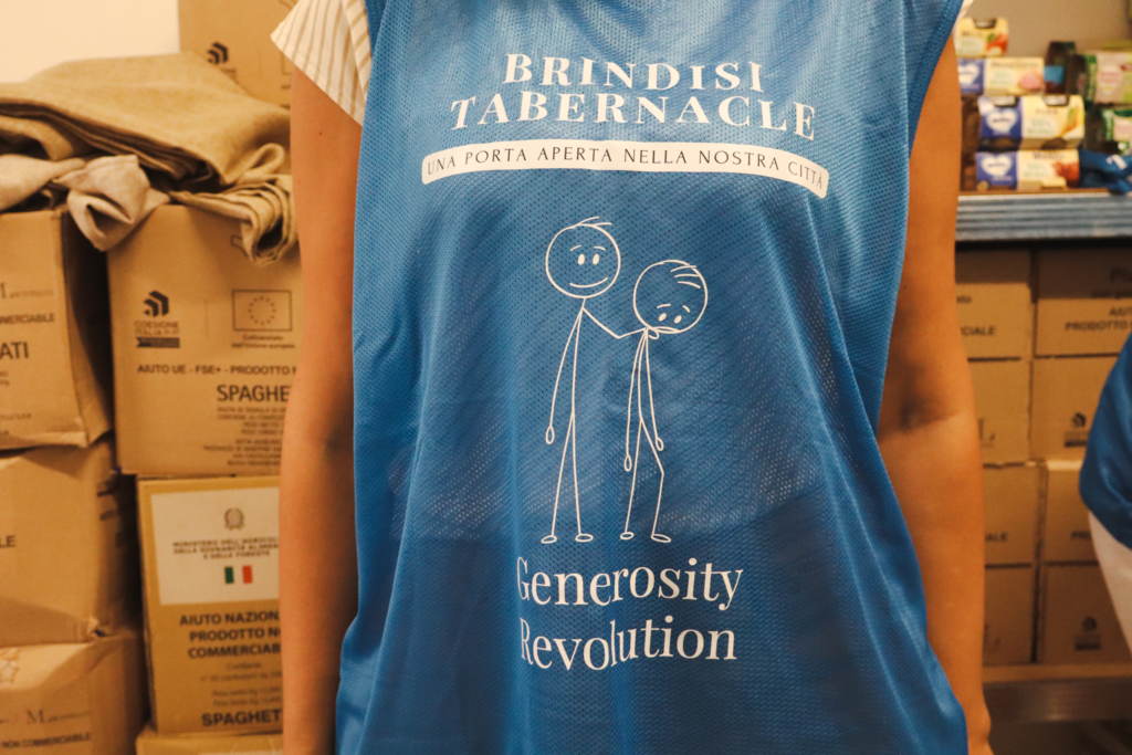 Brindisi Tabernacle APS opera ogni settimana nei quartieri della città , in collaborazione con scuole, enti locali, associazioni, supermercati, negozi di alimentari e cittadini solidali, per fornire un aiuto concreto alle persone e famiglie in difficoltà , attraverso un programma di distribuzione alimentare stabile e continuativo.Attualmente oltre 170 famiglie vengono supportate ogni mese con la consegna di pacchi alimentari contenenti beni di prima necessità . La distribuzione avviene ogni settimana, grazie al lavoro dei volontari e al contributo di chi decide di donare.